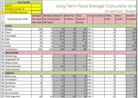 Food Storage Spreadsheet - Food storage inventory spreadsheet template this document is a template that can be used to track and manage the inventory of food in storage. Edit yellow cells to see how much of each item you need. With our template, you can easily input, edit, and update information on your food inventory in real time. Easily monitor your stock and never.